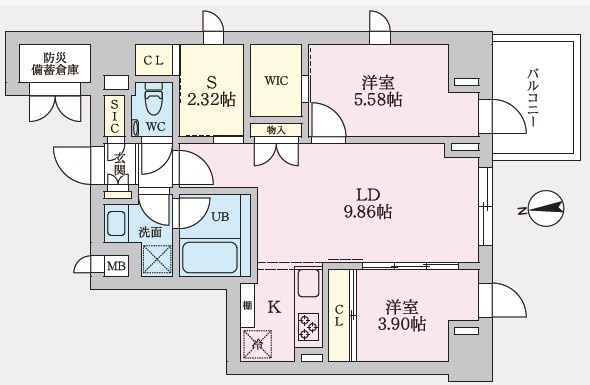 2LDK+1S(納戸) S 2.3帖 |