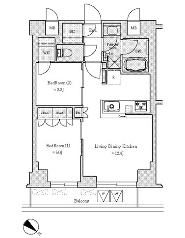 2LDK LDK 12.4帖/洋室 5.0帖/洋室 3.3帖 |